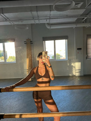 I didn’t expect this set to fit so well. The fabric is soft but supportive, and the scrunch detail is flattering without feeling too much. I’ve worn it both at the gym and casually — super comfortable.